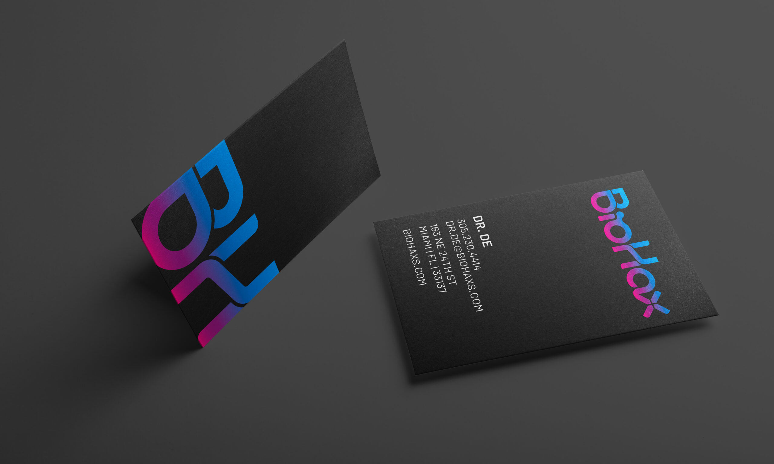 With the brand language established, Dreamspace developed a visual identity system that feels distinctive, polished, and consistent with the company’s positioning. The logo became the foundation for a broader design language that could scale across physical and digital applications while helping Biohax feel more recognizable and cohesive in the market.